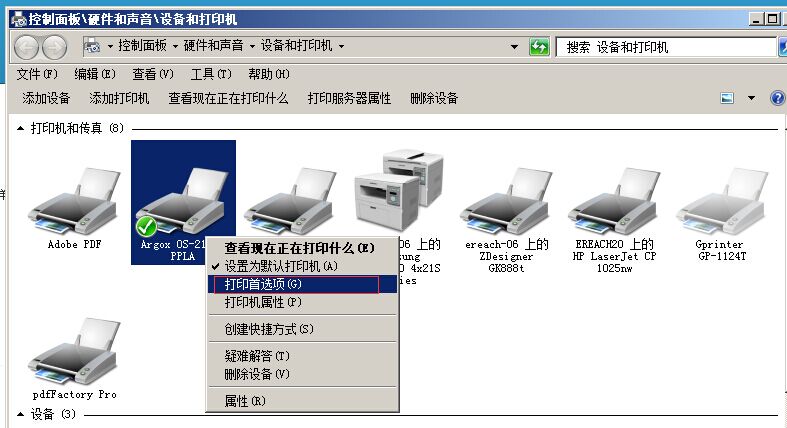 因为excel打印标签尺寸是调用打印机设置里的尺寸,所以要先设置标签打印机的打印尺寸(标签打印机一定要支持80*60mm尺寸!),这里以本公司WIN7系统使用的立象标签打印机Argox OS-214TT PPLA为例来设置。